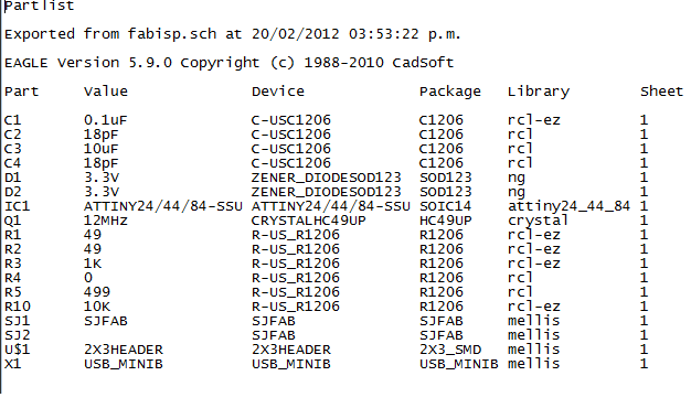 If your Fab ISP has been successfully programmed, you should see a list of the USB devices plugged into your computer. The Fab ISP will be listed in a line like the following: