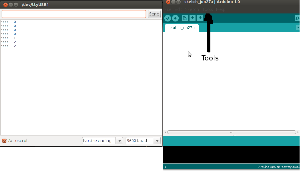 The node name (ex: node 1) should also be displayed on the serial monitor.