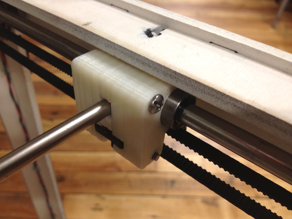 We ran into some issues with the alignment (ease of movement) of the extruder on the XY rods. We didn't have the specified bushings (we were using 2 smaller ones per assembly - 1 in each end), and thought this might be the problem.
