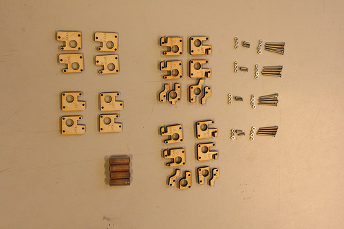 We did a version with laser-cut pieces but the laser was misaligned and threw the assemblies off considerably. Making the holes just tight enough to fit, then hold the bearings in place, took some doing but we finally worked it out.