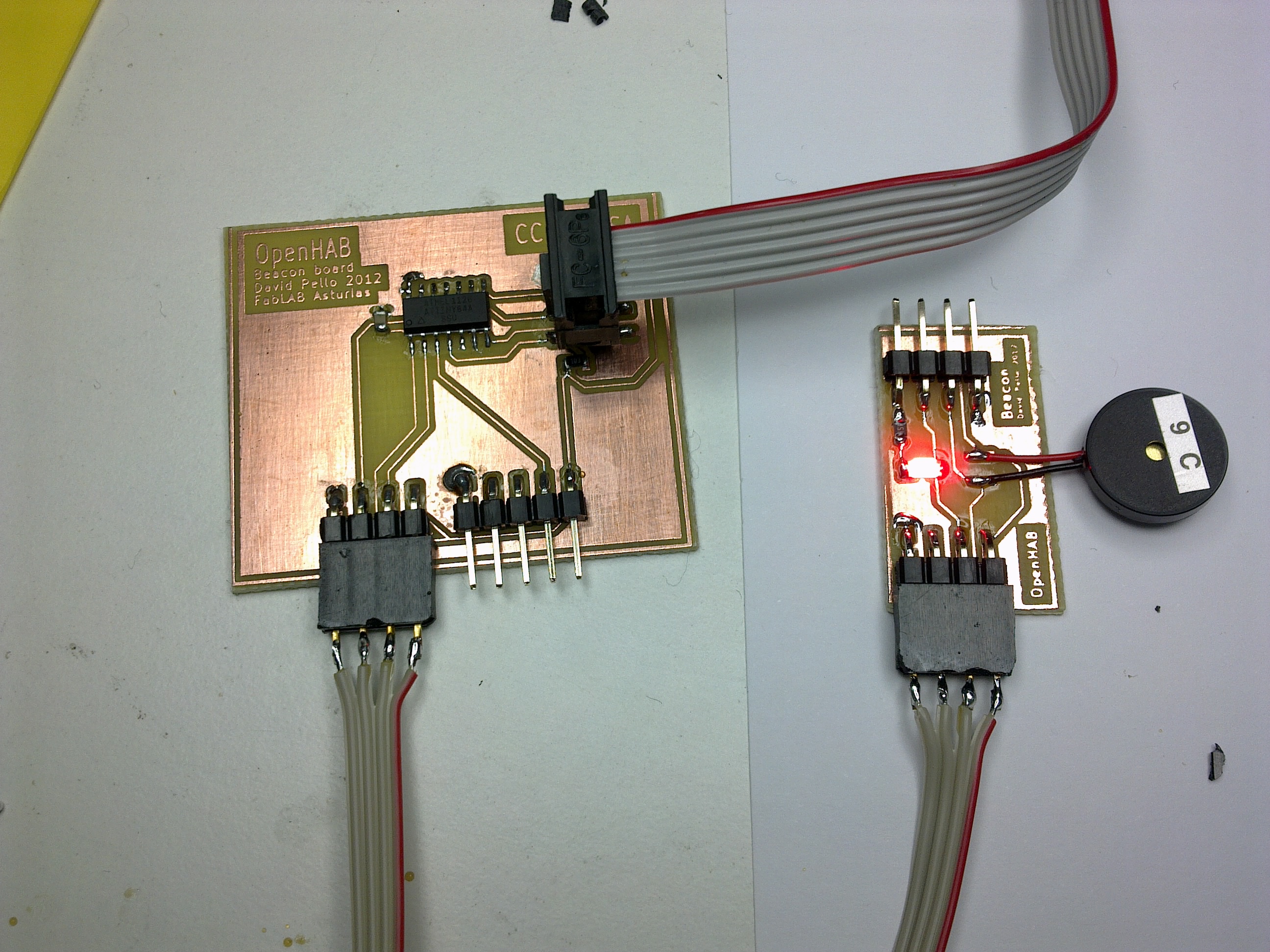 Then there are two twin boards with the LED and the speaker, they have connectors on each side to make a pass-trough of the LED and speaker signals