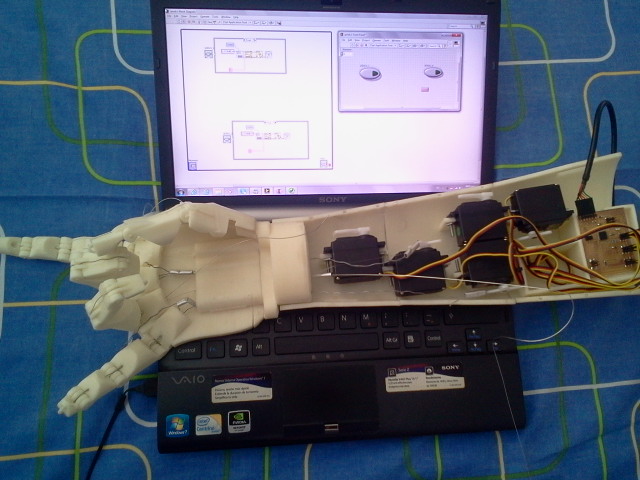 Also I used serial comunication but I do not have the prototype yet, I will have the board and the prototype for my final project and in that moment I will show the interface, serial comunication, servo control and finally the movement of the prototype (hand),
