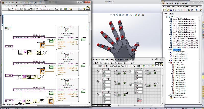 In this assignment I used Solidworks for graphical interface and for controlling the graphical interface I used LabView - SoftMotion Module, I saw tutorials to learn how to control SolidWorks with SoftMotion Module and here is the link.