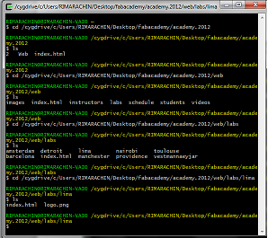 - cd /cygdrive/c/Users/<your username>/Desktop/fabacademy + "enter" // go to the specific directory