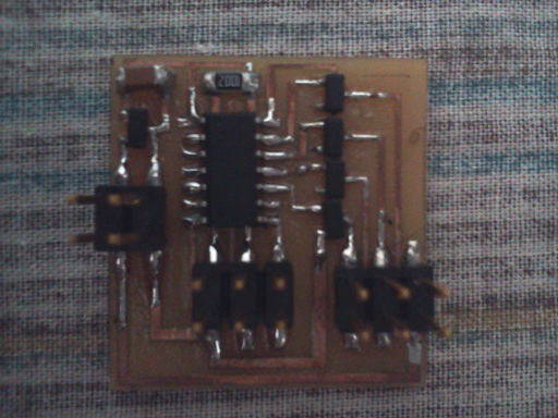 In this assignment I made a board to control servomotors and I also chose three examples, Stepper.c, RGB.c and DC_Motor.c, I used FabModules for milling the boards, then I soldered and finally I programmed those boards.