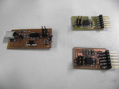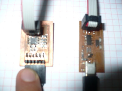 | Here are the boards (right) ready to be programmed with the FAB ISP board (left) made in a previus task |