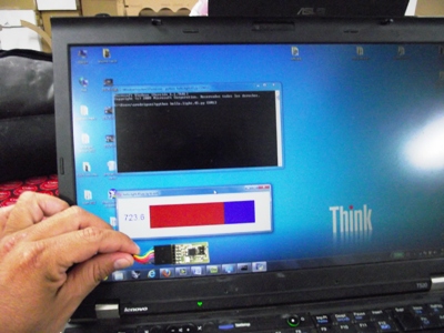 | Here, testing the hello light board also in UBUNTU enviroment. Then we must to write hello.light.45.py /dev/ttyUSB0 to access the visual interface. | Here the program command: python hello.light.45.py /dev/ttyUSB0 |
