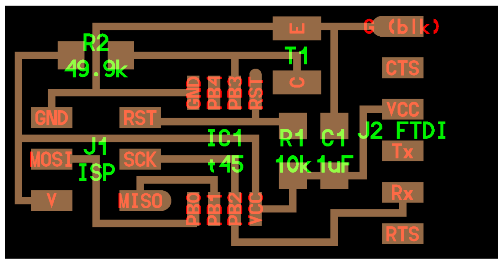 Here the program commands: FOR HELLO TEMP BOARD sudo make -f hello.temp.45.make program-usbtiny FOR HELLO LIGHT BOARD sudo make -f hello.light.45.make program-usbtiny |