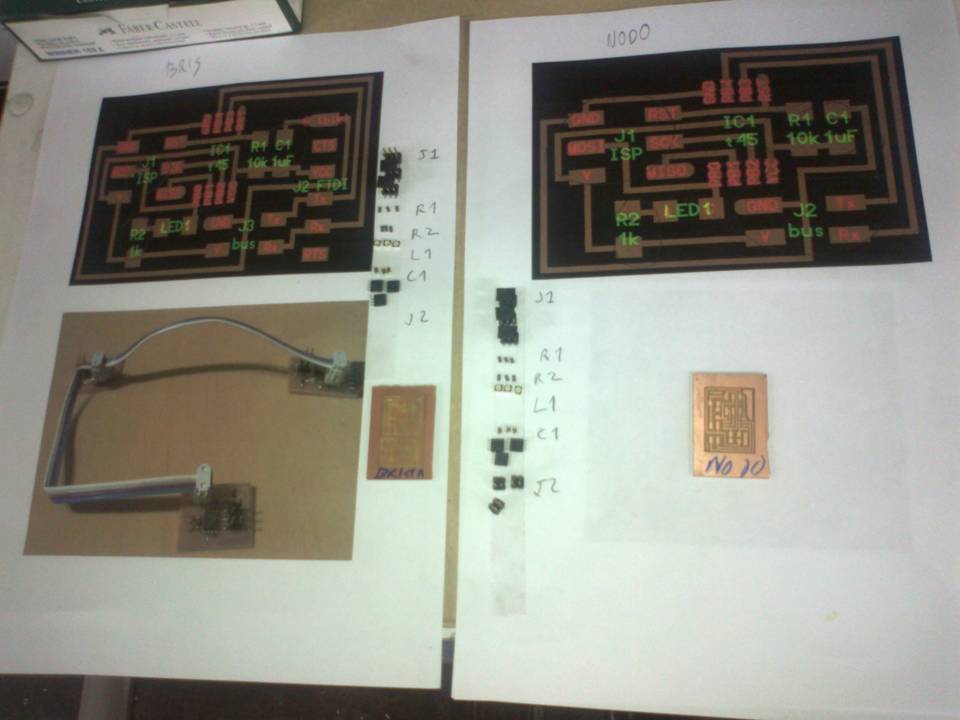 STEP 2: Milling and soldering I milled and built one bridge and two node boards that were downloaded from our academy 2012 class web page |