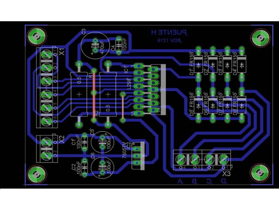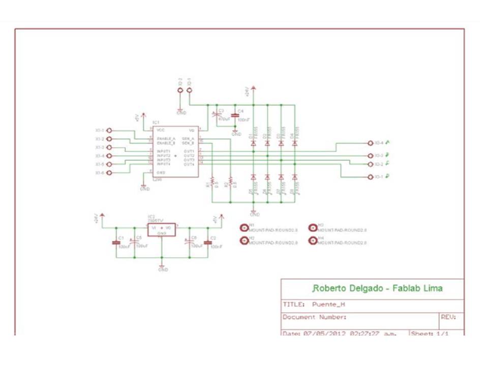 As we did not find the original components as the A3982 the stepper motor driver for the shield board at the local stores and others we decided to design a temporarily boards L298 (Dual full bridge drive) one for each stepper motor taking in account the size of the local found components. |