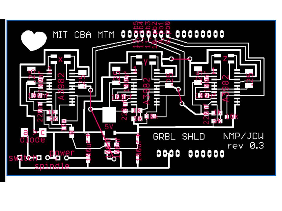 First, we dowloaded the shield board proposed in our class for milling it in the Modela.