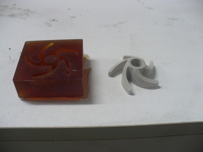 I am doing the casting with the cement prepared in a 100: 22 ratio on weight of water and the cement. at the end and after 3 hours we can demold the impeller from the mold and showed in the last picture.