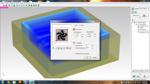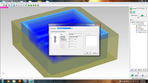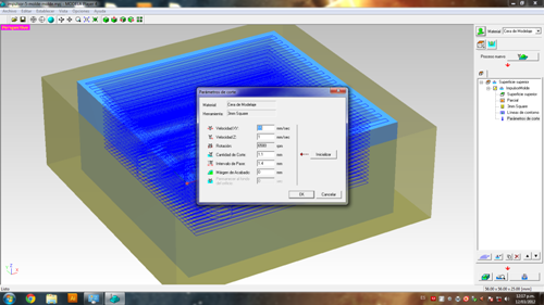 To making the molding for the mold I wanted to work it using the Modela machine which parameters are showed in the next pictures.First It has to export the drawing in *.stl for open it from the Modela Player program where we will have the tool traces as showed as blue demo in the pictures.. |