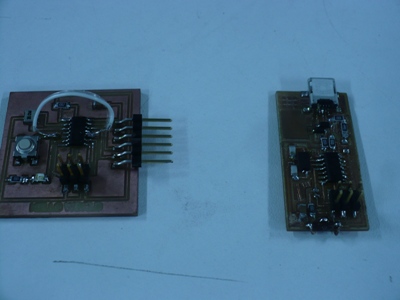Here it is the original boad with the jump wire to change the ports. Bellow, the picture on the left show the failed intention of programming the original board |