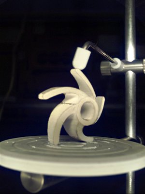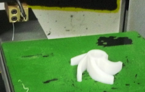 Well, to complete my task I am printing my impeller designed from Rhino usin he 3 UP 3D printer. The idea to choosing this element was to manufacture it with a material different from metal as the ABC material (used in the task) or PVC or another high strength polymer materials.