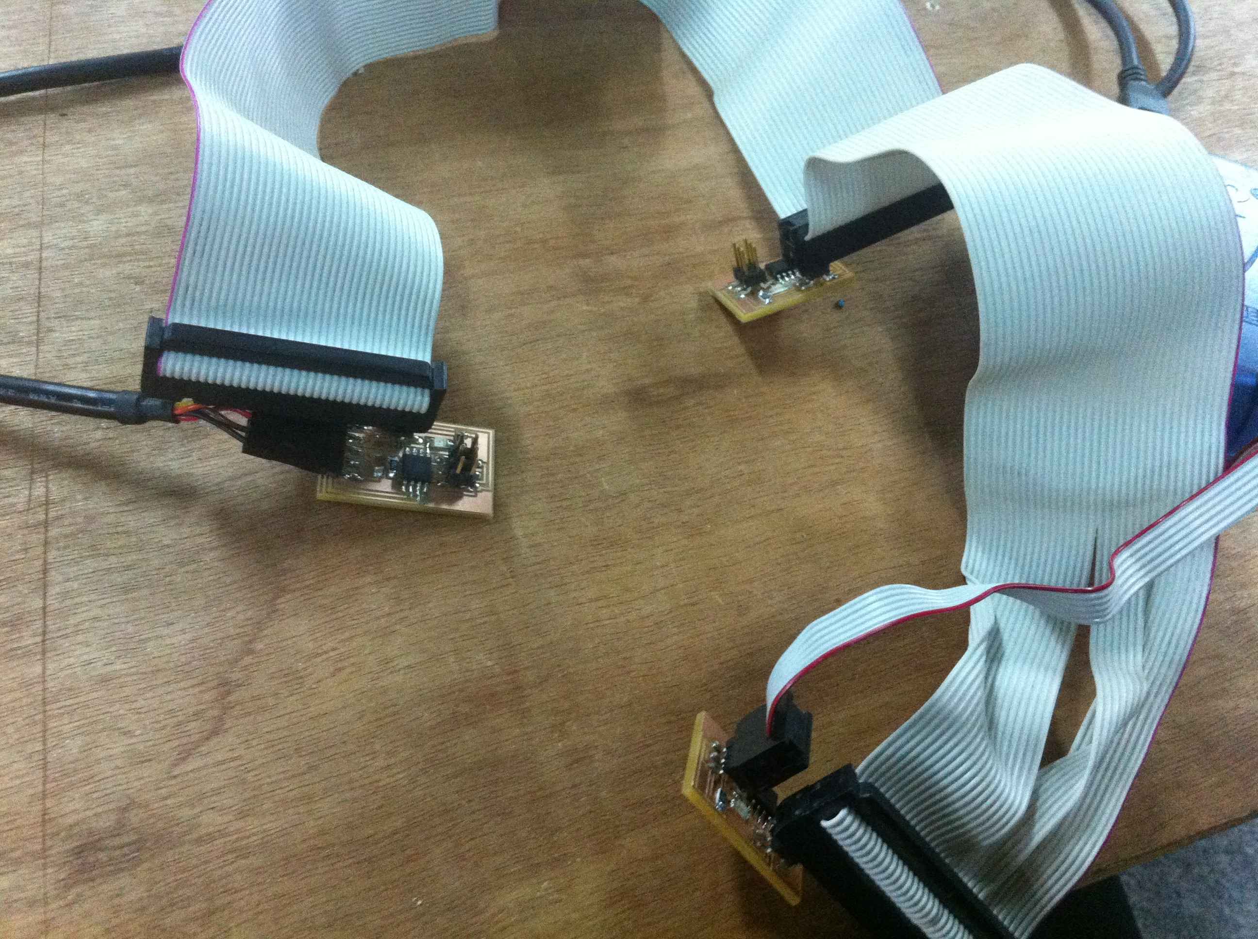 I built the hello.bus.45 network. I milled and soldered the boards.The bridge has a ftdi connector.