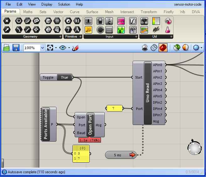 In Firefly i opened the right port ( no. 7) and added an uno read component.