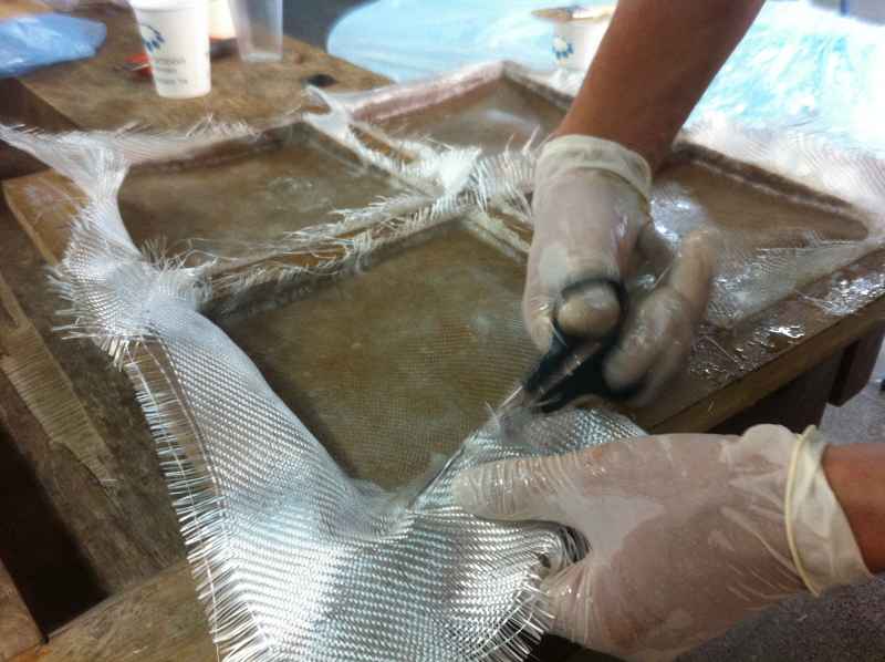 i cut the fiber glass sheet to the size of the mold and applied 4 layers with epoxy resin between each layer.