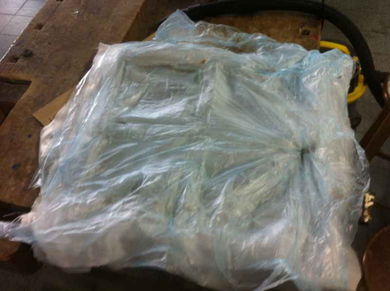 I applied nylon sheet on top of the fibers and close the mold with some vise.