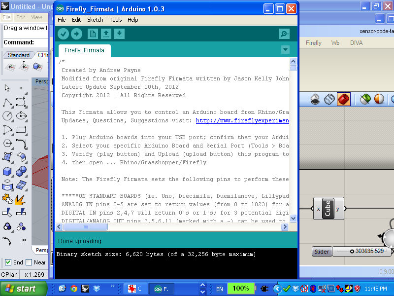 In the tutorial there is a very clear explanation on how to use the arduino that communicate with the arduino board.After i plug in the arduino board i uploaded the scatch called firefly_firmata and the bord is ready to talk to the grasshopper.