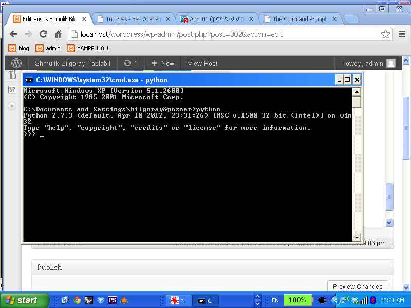 Then i tried to do the same in windows xp. i installed python 2.7.3.