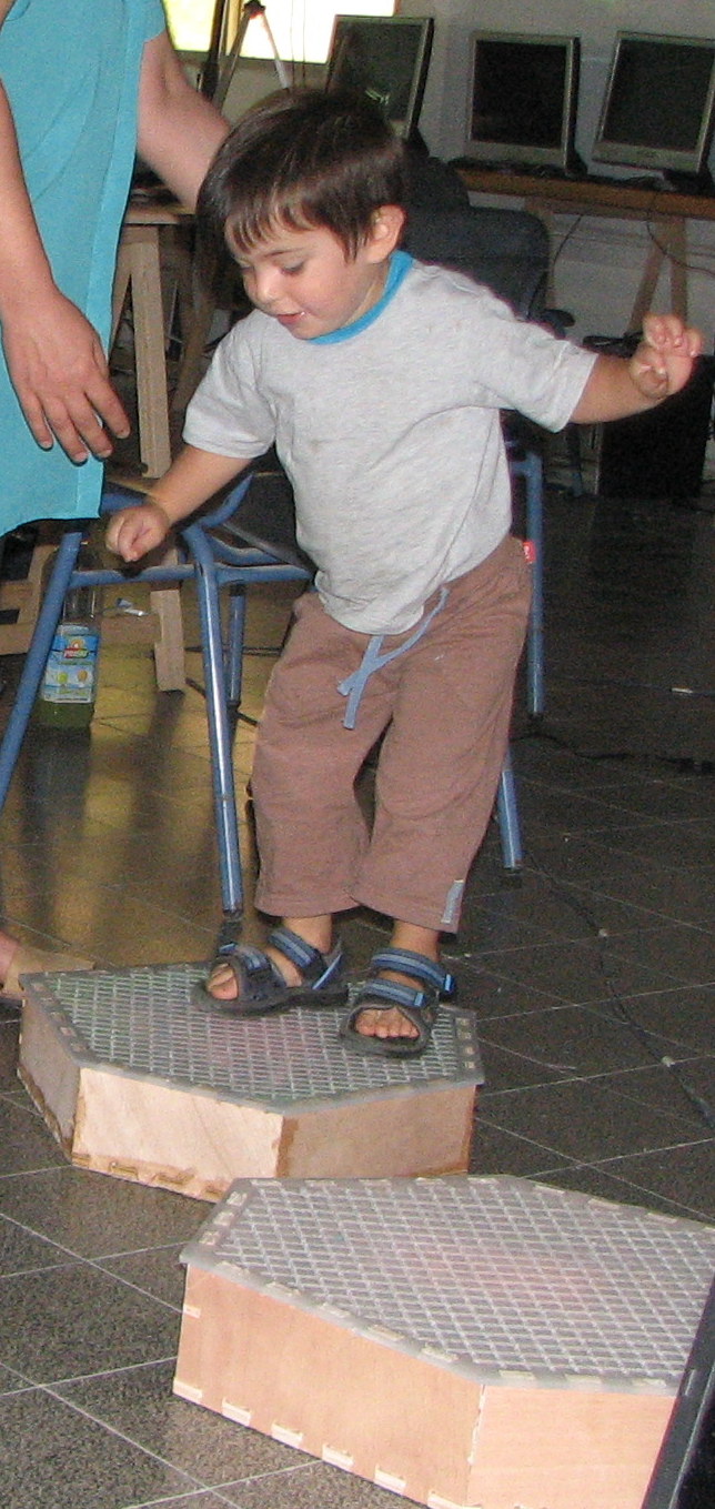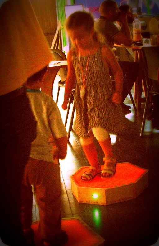 - Playing (game) mode: the controller will play random sequences of tones (each time an additional note will be played starting with one tone) and the players, will have to step on the right bubble to replicate the sequence.