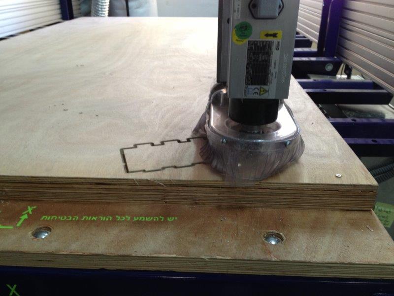 We used teeth connectors to connect the box faces. We decided to use the ShopBot to cut the box’ so we needed to adjust the joints. We made “Dog Bone” shapes at the inner corners of each connector. The diameter of the shape was in accordance to the diameter of the milling bit we used (up-cut, double flute, 6 mm).