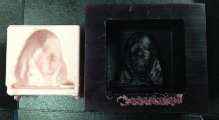 After two runs (rough and finish) I got a nice mold of my own face, but I needed to fix the frame problem, so I put the mold in the Sherline 5410 machine and used the manual control to cut the extra staff out of my mold