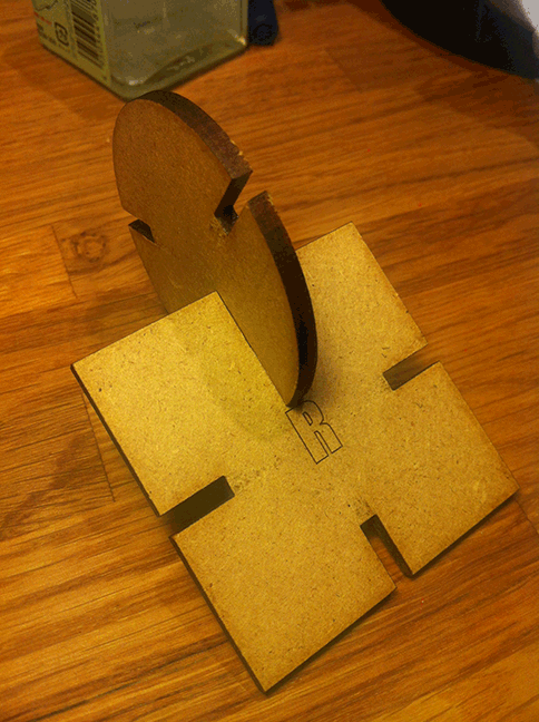 I took this design to the laser cutter, and used the default printer driver. The material I chose to use was 3mm thick MDF, as I like the texture and sturdyness of the wooden material.