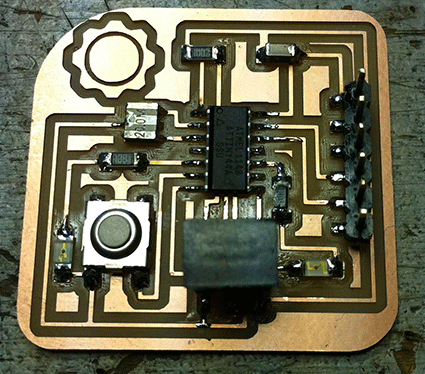 From here it was a fairly straightforward process to get the board milled with the Modela. For a description on how I've previously used it you can go back to #4. Electronics Production.
