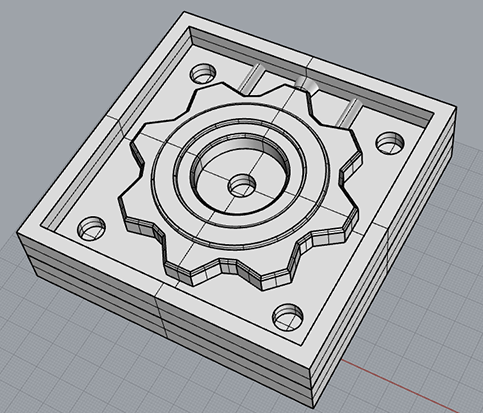 I started by creating a model in Rhino. I opted to do a cog shape for the assignment. I had a 2D illustrator file of a cog that I made in an earlier project, and imported it into Rhino.