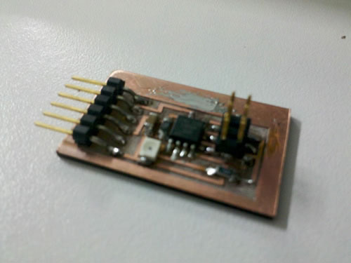 We had many options for making boards this week, but I decided to focus more on my final project and work on something with light sensors that I could finally use. This time after many tries I didn't have any problems with the Roland Modela and could mill correctly the boards I wanted to use. I had a lot of trouble with the welding though. On my first try I believe I burned something, but I can't really tell what.