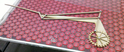 The materials I've been using for the mecanism are recicled wood parts I've found, since there's a lot of wood that is wasted by other users of the laser machine. This is good for two reasons: the reuse of material that where going to be thrown away and also because it didn't add any susbstancial cost to the project.