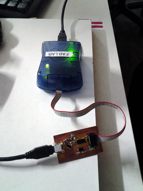 For this week's assignment we made a FAB ISP and then program it. We had to made the carving on the plate, weld it to the different parts of it and then program it, test it and finally, get it to be recognized by the computer.