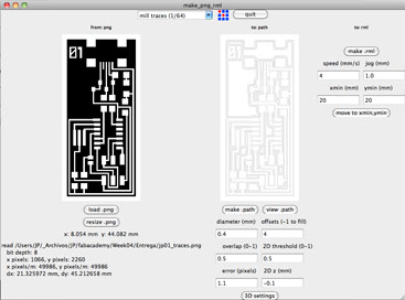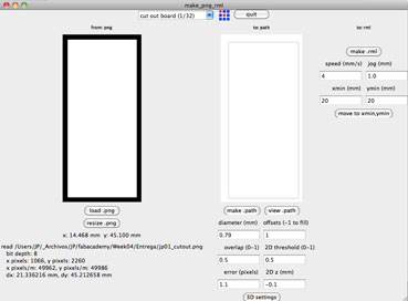 We used FabModules to control the Roland Modela. Input is the PNG and output .rml