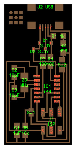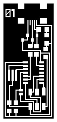 For better or worse I decided to use the Resonator version of the hello.ISP. I downloaded the PNG files but decided to make a little personalization, instead of the Center for Bits and Atoms logo, I just put a small numerical 01. Maybe I was pesimistic since I thought I will have to mill several boards before I get it work....01,02,03... and so on. Luckily V.01 worked just fine for me.