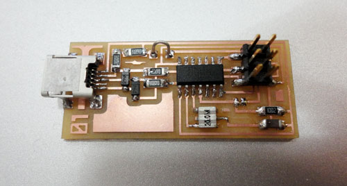 Plug the FabISP into your computer via the mini USB cable and if you get a green light, you are good to go. Luckily I got it so I was ready to upload the firmware.