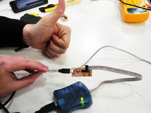 I also wanted to test my new board, so I programmed Franciscos board with mine. It went smooth.