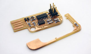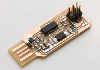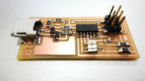 To program other things with your brand new FabISP board, you have to remove the jumpers. In my case I removed the piece of cable and the solder material.