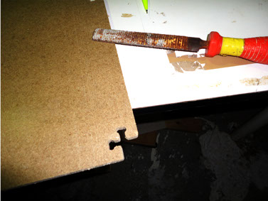 So, the only piece useful was the chip board. The wood is no good, but still at least I have a clean surface to work with.