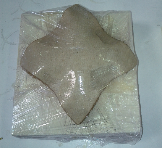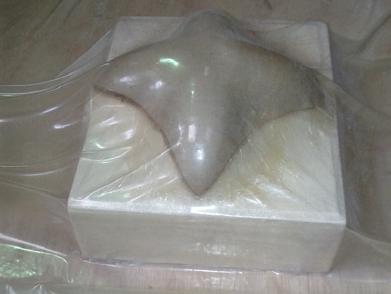 And then you have to extend over the mold covering all the layers with plastic film.