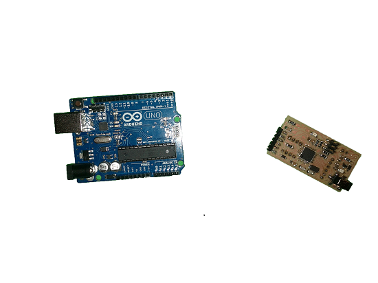 Another objective that I wanted to do was to define what kind of main board I will use in my final project, to control the motors. So I decided to test the Barduino board, recently improved by Luciano. Is a small board with the same Arduino Uno microcontroller, Atmega328P.