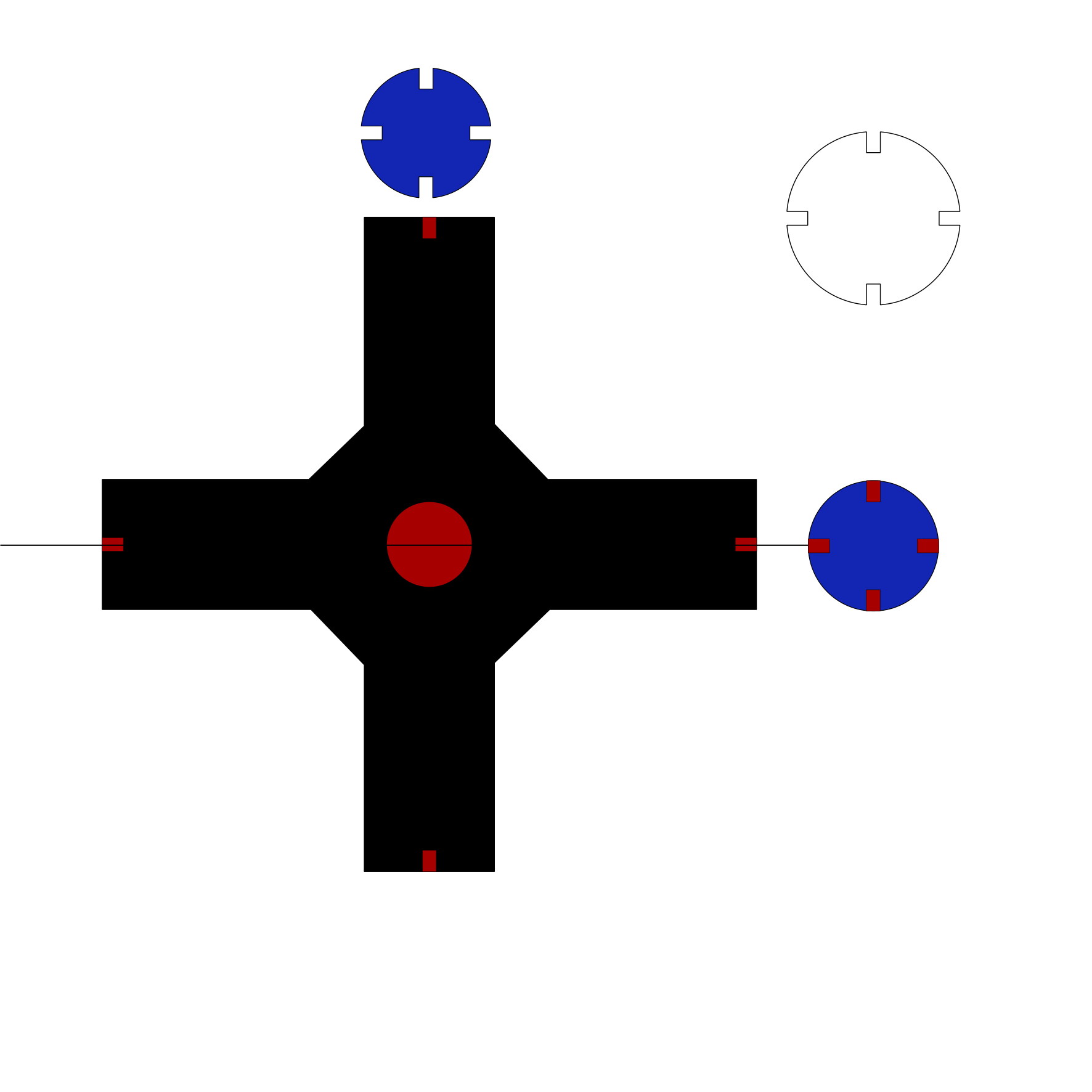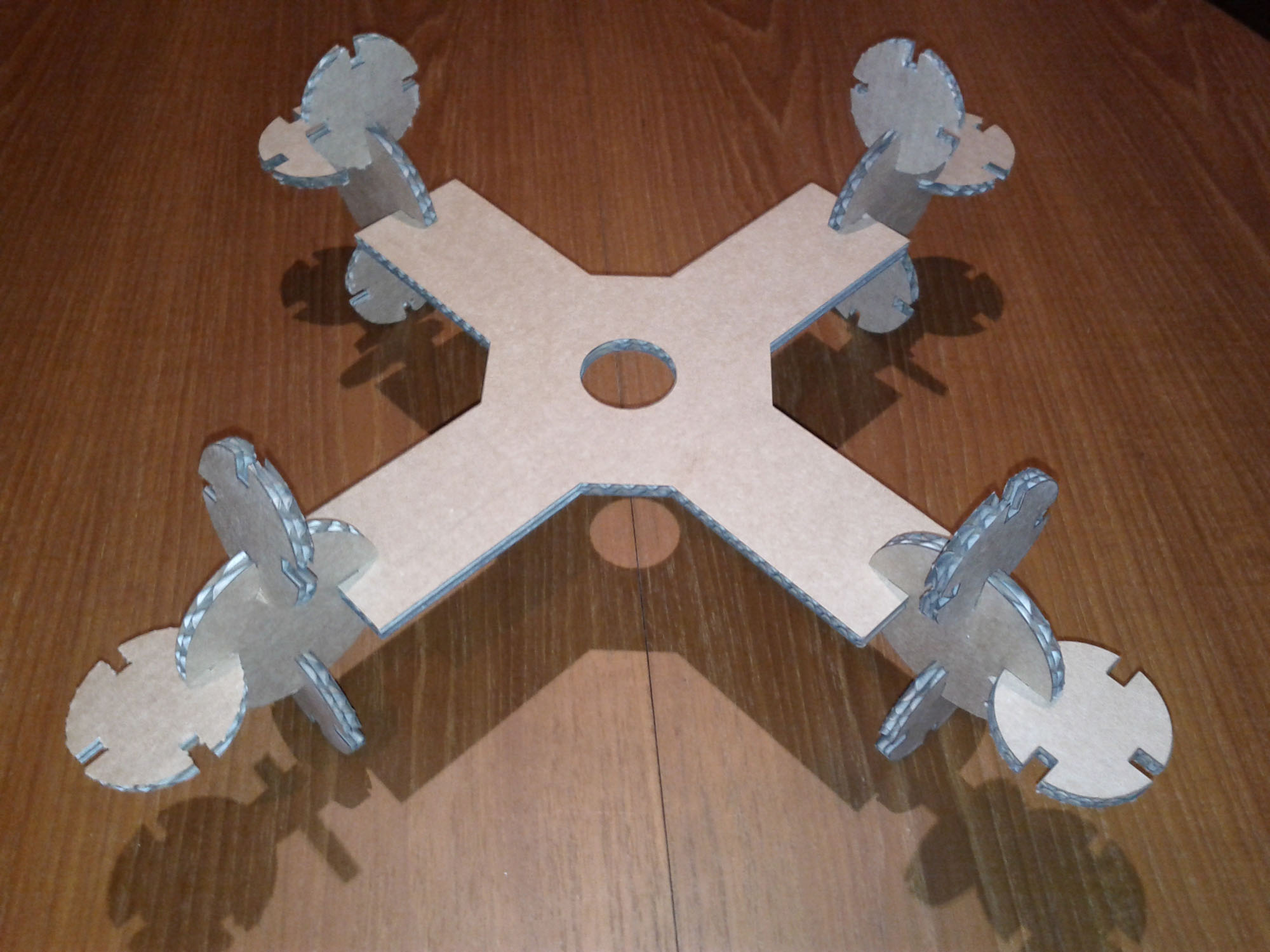 My idea was to make a mock-up of my platform for my final project. A cross-shaped where I've inserted four circumferences simulating an omnidirectional wheel at each end.