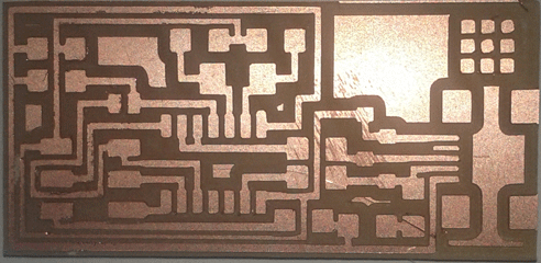 When I finished, I changed the size of the drill by 0.8 mm, then I opened the interior.png image and I sent it to print. A few minutes later the milling machine stopped and I could clean the plate and see the result.