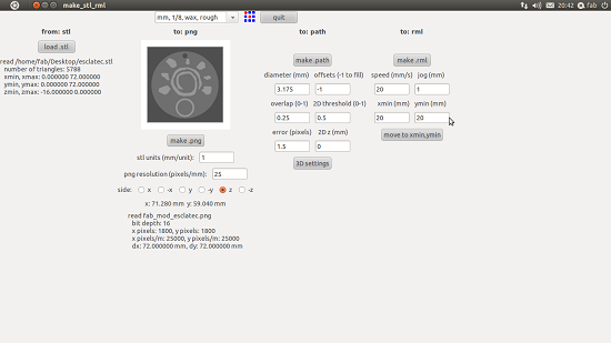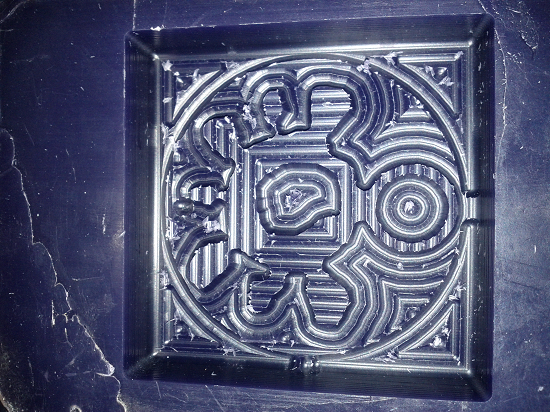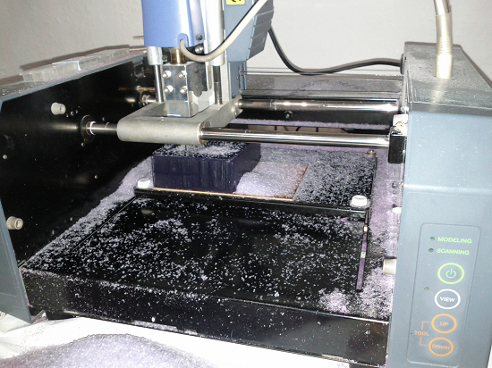 Finally I've exported my logo as .stl format to used in the Modela. In the miller machine I've loaded my image .stl and I've started with the larger drill to proceed with the removal of the material.