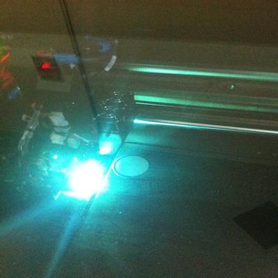 The wheel was printed (and duplicated). The 3D printing process is fun to watch at first but gets boring. However, I am still amazed at the capabilities of additive construction. After converting my design files into binary-stl format (readable by the 3D printer), I set up the printer and began the process.