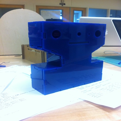 This is what the foot and the head of the slider rail will look like. These models are made of cardboard but the real supports will be made from acrylic. One of the team members has jumped out in front of the pack and has