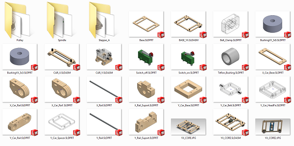 Like I write in the previous asisgnment, finally we decide to create an small CNC milling machine, normally I start drawing the parts, like the steppers, couplings,ball bearings, rails, wood parts, etc, as you can see in the pictures below: