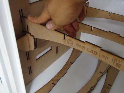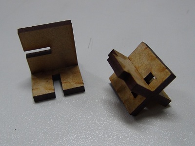 Before the cutting, I need to made some tests with the material that I will use, the 3mm MDF; sometimes it don't has exactly 3mm (use the vernier to take measure). Normally I cut small scuares with hole or canal to test.