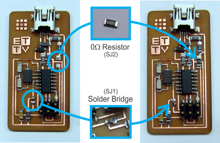 Now remove the solder bridge and the 0-Ohm resistor (this could be removed with the desoldering wire)